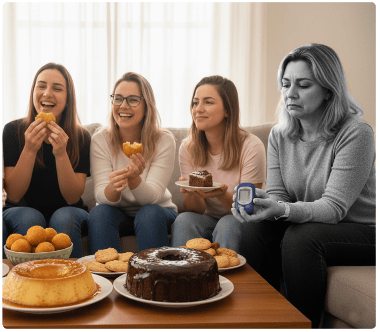 Você vive nesse ciclo de "Come algo fora da dieta, aumenta glicemia, sente culpa e medo e aí se limita e passa vontade" e por isso você pensa: