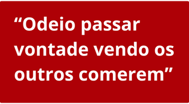 “Você não está sozinha nisso. Eu sei que você já deve ter passado por isso, vendo as pessoas comerem comida gostosa e você tendo que comer um prato sem graça e sem gosto, que raiva que dá né?! Desanima não é mesmo?!