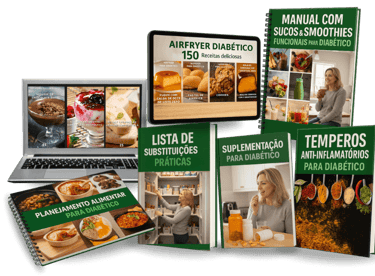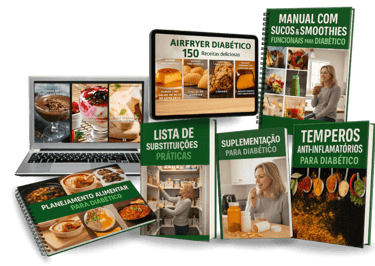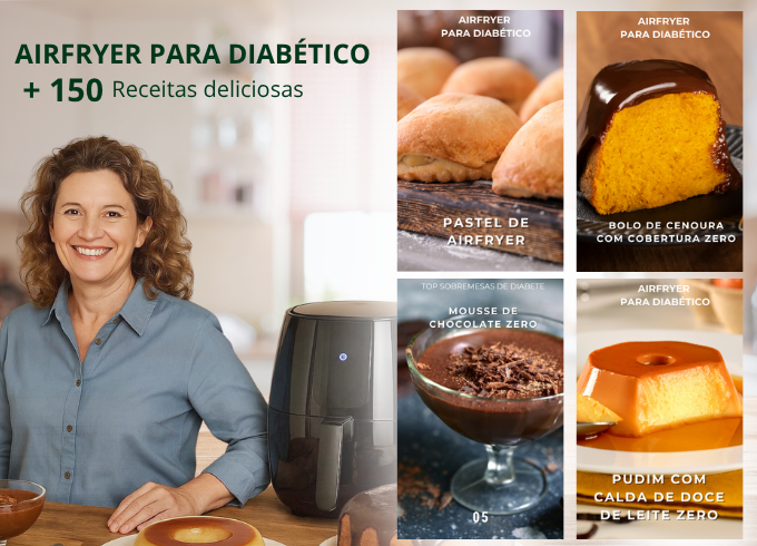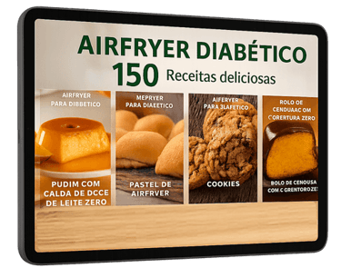 Essa será a última vez que você terá que ficar horas na cozinha e não ter opções saborosas pra você, porque o AIRFRYER PARA DIABÉTICO vai te ajudar a não passar vontade com as receitas rápidas e deliciosas feitas pra você que é diabético e quer ter o prazer em comer algo realmente gostoso!