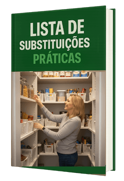 Lista prática de alimentos permitidos, proibidos e substituições inteligentes para manter sempre em casa. Como trocar farinha branca por (coco, amêndoas, linhaça), açúcar refinado, adoçantes e óleos por opções seguras para diabéticos sem perder sabor.